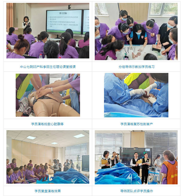 整个培训历时两天,招收学员40人,均是来自临床一线的产科医师、助产士、护士等相关医护人员,中山七院妇产科有8位导师参与了培训、授课,老师们准备的非常充分,课堂氛围有趣而又紧张,学员们听的非常认真,并积极讨论记录。整个培训包括8个课题,每个课题都先从理论开始,理论结束后紧跟着分组实操或者演练,课程最后还有笔试和操作考核。考核结束后,组织团队为学员颁发了培训合格证书。